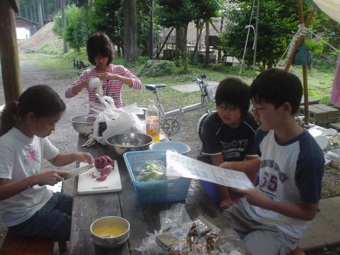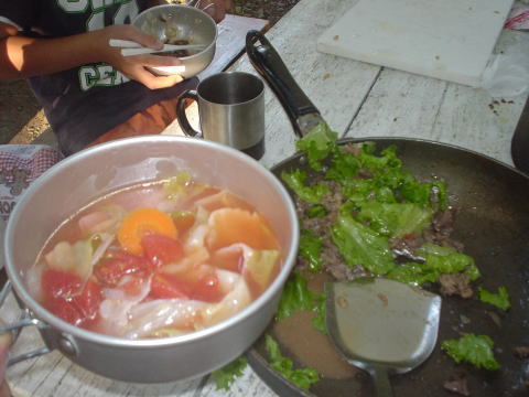 そして夕食の食材が配給され調理もはじまっていました。