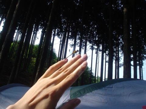 キャンプ場に来る途中で 雨降ったらいいなーって ぼそっとつぶやいちゃったそうです