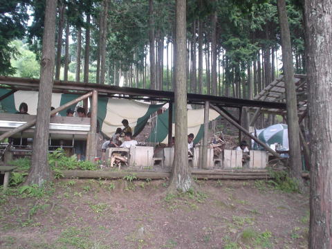 ↓炊事場&食堂にタープを張っています。