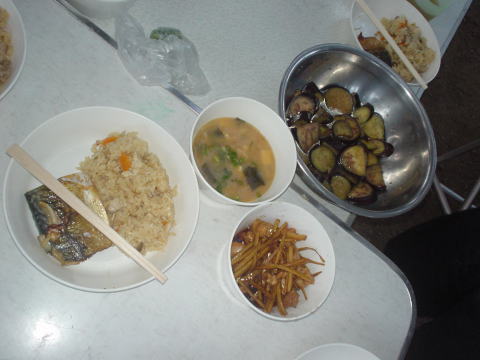 メニューは炊き込みご飯と焼きサバと味噌汁です。