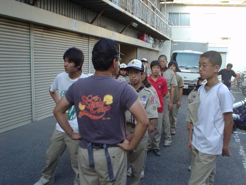 縦列に並びなおしてプログラムを見ながら設営の作業を指示しました。