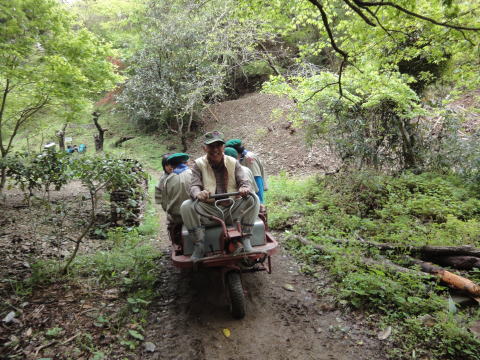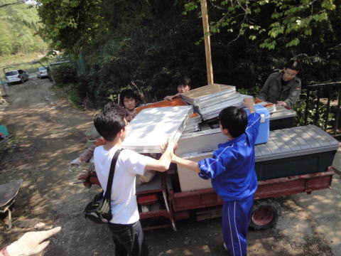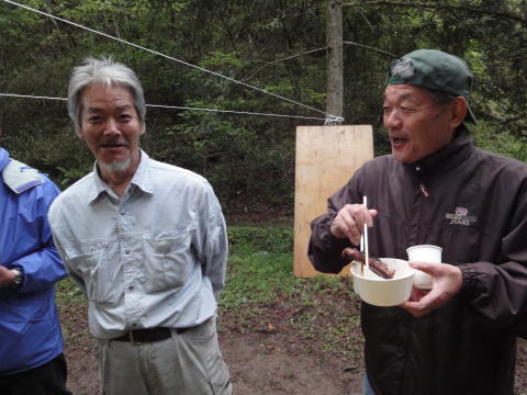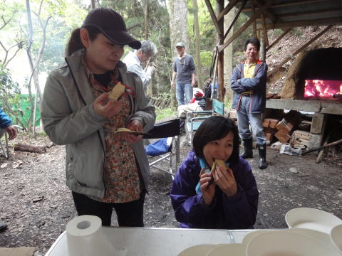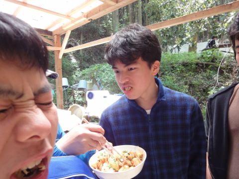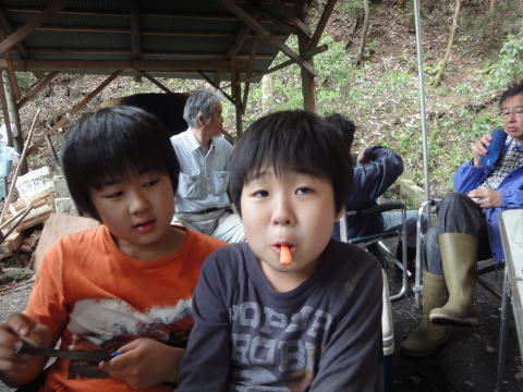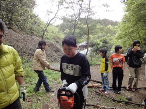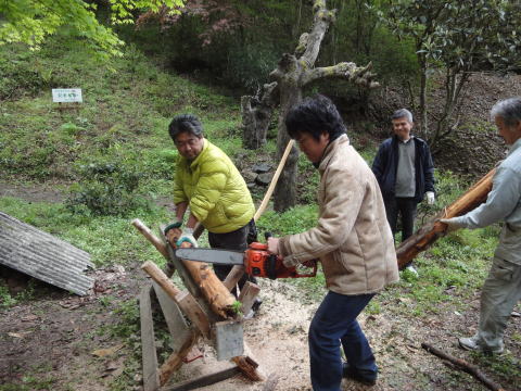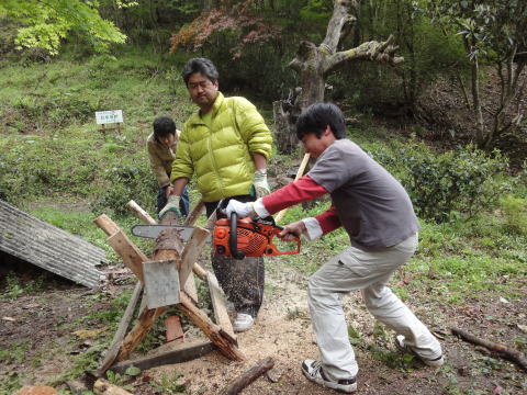 すごい音とおがくずが飛んでくるので、みんな険しい顔になってしまいます。