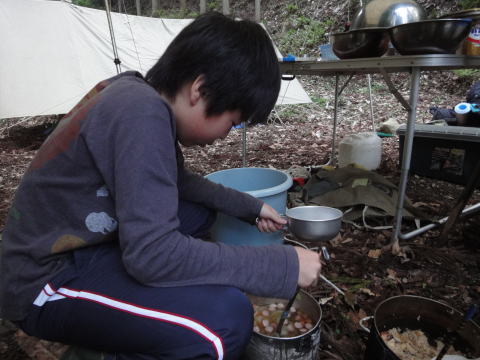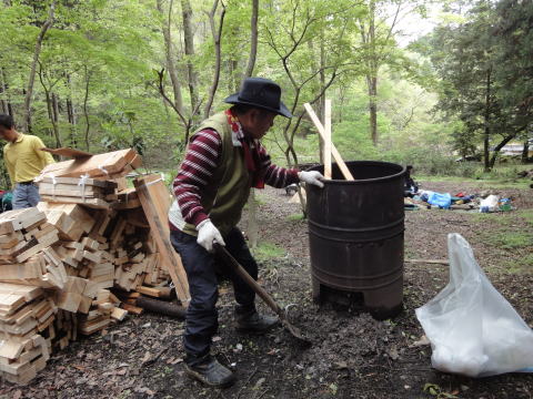 かずおちゃんは火をつけるのが大好きなので、早速準備しています