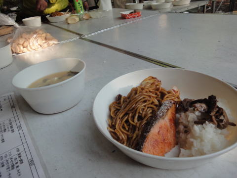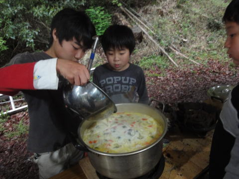 夕食は炊き込みご飯と野菜とウインナーのスープのようです