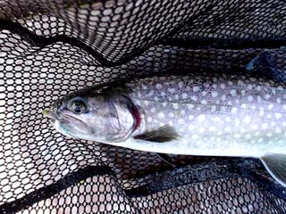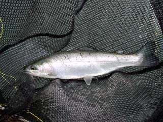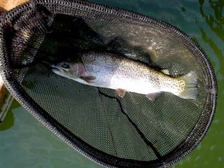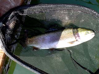 いいサイズのレインボーが連続Hit・・・いや〜いい引きで取り込みが楽しい楽しい 2〜3こんなサイズを釣り上げる。