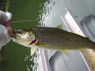 初ブラウン!!!!!!!!うれしい! その後、25cmくらいのレインボーを5匹上げ、計7匹にてお昼休憩をとることにする。