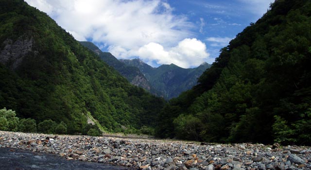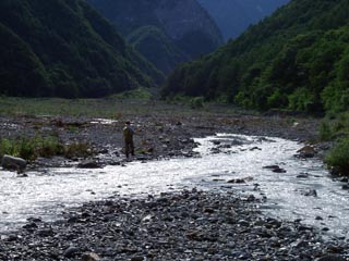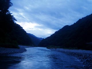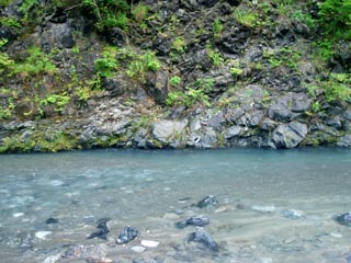 対岸で流れが岩に辺りちょっとした淵になっていて