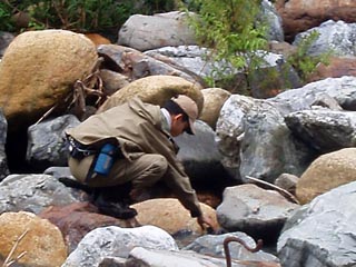 しばらく釣り上がっていくと水が比較的綺麗な分流が・・・そちら側へ渡り