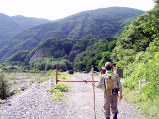 堰堤上の登山客用駐車場にて準備をし、目の前の流れから釣り開始。