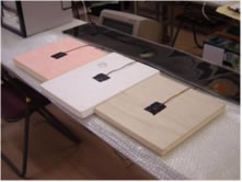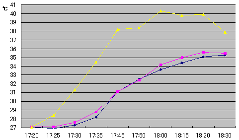 各断熱材の下側中心に熱伝対をセットし、それぞれの温度上昇を計測。