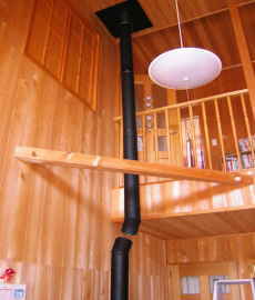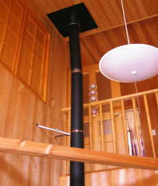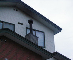 煙突の支えだけで煙突に傾斜をつけ施工した結果煙突が抜けかかっている。 総体的に、新築当時は、良かったであろうが数年後には、このような結果である。 (大工さんが説明書を見ながら施工した結果) やはり施工は、専門にお願いしましょう。 |