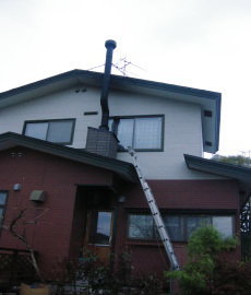 | 煙突施工の悪い例 | 煙突改修工事 | 室外煙突改修工事前 | ||||