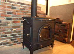 釜戸の古煉瓦を再生し薪ストーブのバックに施工