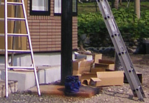 特に水道管や鉄柱は、塗装したものを地中に生めコンクリートで根巻きしている。 |
