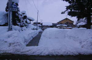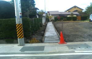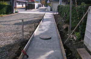 道路から奥のお宅までのロードヒーティング手前の空き地は、他人の敷地で通路部分は、幅約1m 今まで、温水ボイラーで考えていましたが、距離が約40m幅も少なく工事が出来ないと断られていた。注1 オンリーワンは、このような工事も出来ます。
