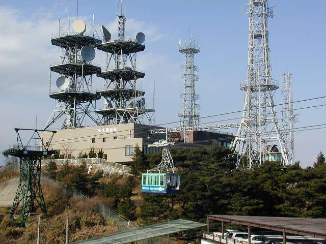 | 山頂の天文通信館。 ここの通信塔は、大阪市内からでも見えます。 その向こうには、 天体望遠鏡も設置されています。 |