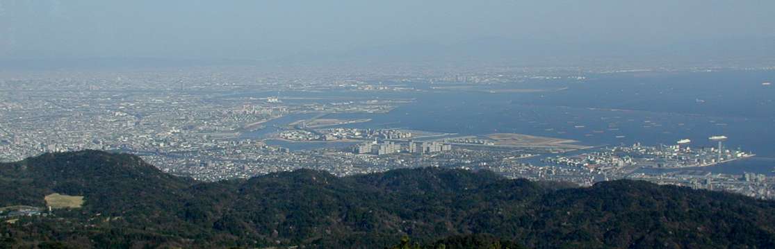 中腹から眺める六甲アイランド。 ここには、神戸ファッション美術館や、 小磯良平美術館、おしゃれなショッピング街、 映画館、それにおいしいレストランなど。。。 横浜のみなとみらい、に雰囲気が似てて、 湾岸線のドライブコース。 |