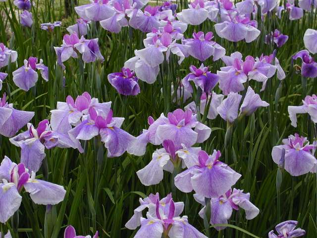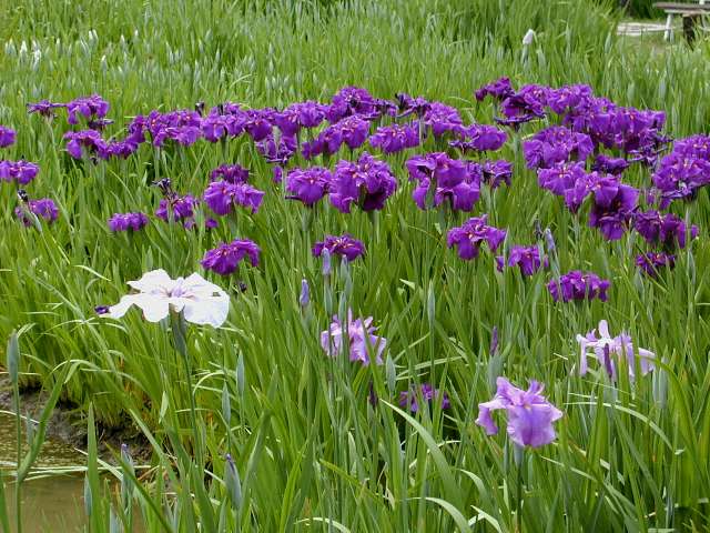 | いろんな写真のHPを回ると、 さすがに、すばらしい写真が多くて、 当HPなどは、未熟だと思います。 写真をメインにせず、 BGMにもポイントを置いている事情を、 お分かりいただけることと思います。 奈良や京都には、菖蒲や紫陽花の名所があります。 ここ須磨離宮の花菖蒲も見事です。 |
