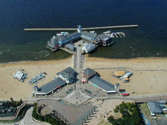 タワーから見た、シーホークホテル。 ホテルの裏に隠れてますが、 福岡ドームの端が見えています。 右奥から手前奥まで、市街地は大きく広がり、 活気ある都市、福岡の 全容を見ることができます。 |