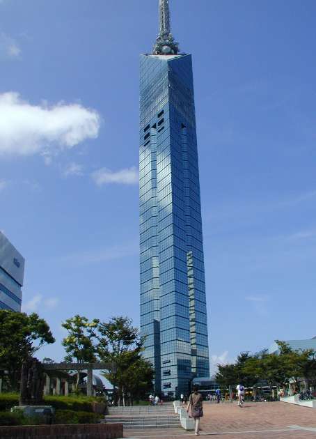 | 福岡タワー。 東京タワーについて2番目に高いタワー。 福岡市内と博多湾が一望に。 総ガラス(鏡面)張りのシンプルな形状の、 美しいタワーです。 隣には、シーホークホテルと、 ダイエーホークスのホームグラウンド、 福岡ドーム。 |