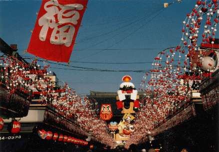 東京浅草、浅草寺参道のお正月。