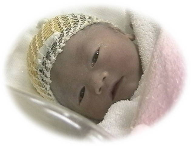 そこで吸引による出産のため、頭に可愛らしい帽子が、、