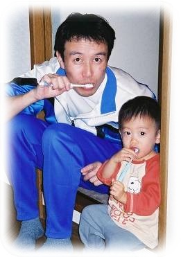 で、食事後はパパと歯みがきシュシュシュッ(^_^;)