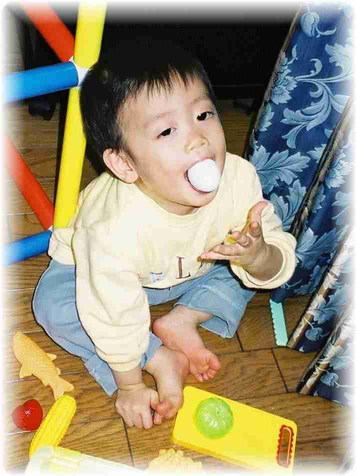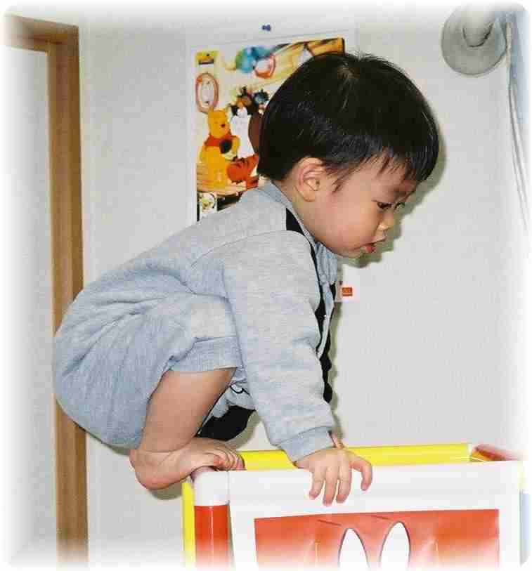 掃除機を捕まえては馬乗り(;_;) ままごとの卵は口にくわえておちゃらけて(;_;) 最後は、ママやパパに食べろなんて、、、(;_;) いつ落ちるかと冷や冷やしているジャングルジム(^_^;) 極めつけは、シール遊び! この顔を見ればみなさん幸せになれますよ!(^_^;) 前のページ トップ