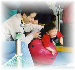 幼児しか遊べないフロアでの親子の絆を深めているシーン、、、
