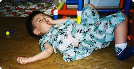 夏だ!祭りだ! と言うことで、近所の学校の夏祭りに行きました。 パパと違って何を着ても似合うねぇ>明樹(^_^;)