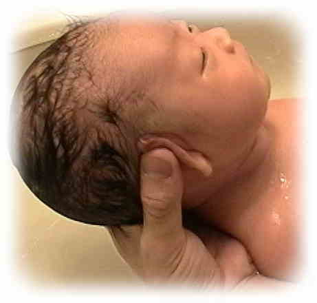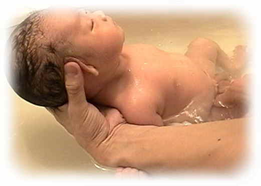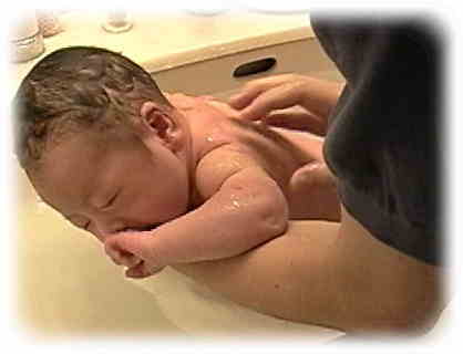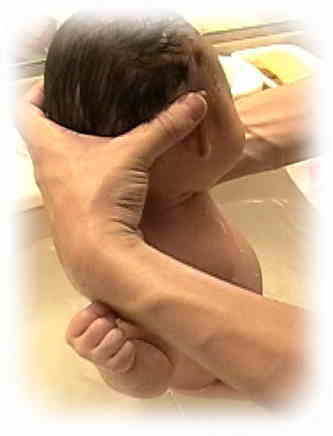 7)最後にまた仰向けに変えて、ゆっくりとつかります。お湯がぬるくなっていると、