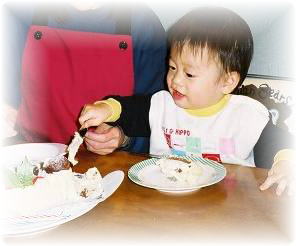 なかなか良い写真でしょ?>自分でほめてどうする<(。_・☆\ ベキバキ まぁ、これだけ写真を撮れば少しは上手くなるだろうな(^_^;) ママも明樹もケーキを前に嬉しそう(^_^) 最近は、何でも自分でやらないと気が済まない(^_^;) ナイフも、、、