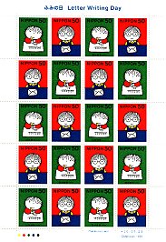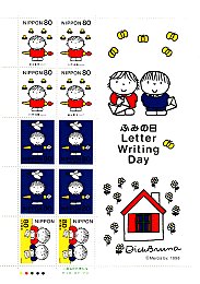 | 郵政省は手紙文化によりふれ合ってもらうため、1979年、 毎月23日を「ふみの日」と定めるとともに、その年より毎年 7月23日に「ふみの日」切手(7月は文月とも呼びます)を 発行しています。 |