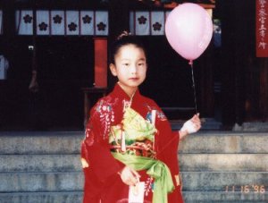 H8年用年賀状の写真部分 H9年用年賀状の写真(七五三のお参りの前にけがをしました)